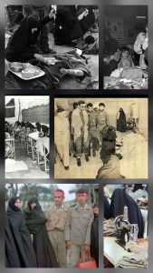حضور آیتالله خامنهای در خیاطخانه جنگ زنان نه تنها در امور پشتیبانی جنگ تحمیلی مانند دوختن لباس، بافتن شال و کلاه، و تهیه مواد غذایی مشغول بودند، بلکه بسیاری نیز دورههای مهر ۵, ۱۴۰۴