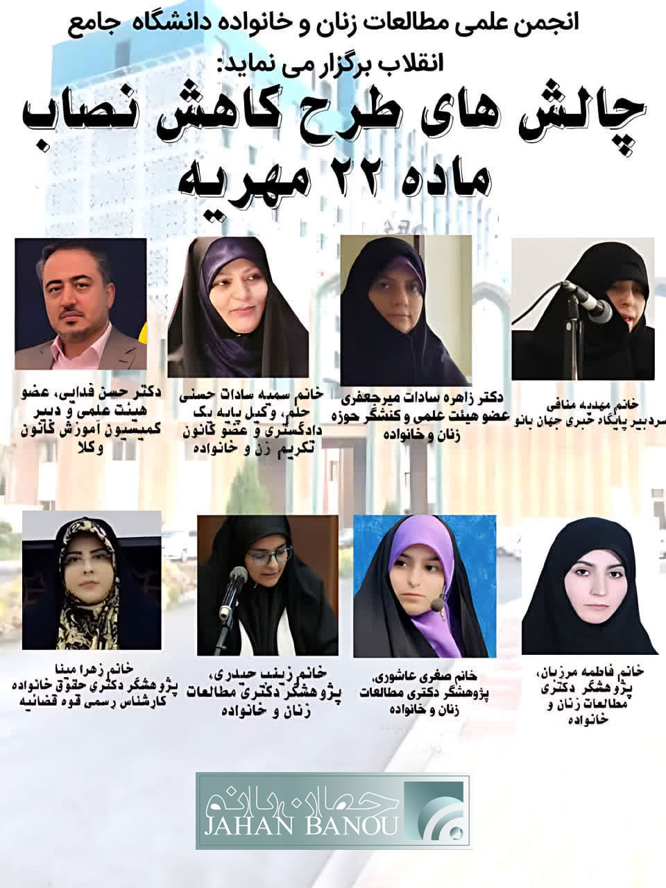 به گزارش پایگاه خبری تحلیلی جهانبانو، نشست تخصصی «چالشهای طرح کاهش نصاب ماده ۲۲ مهریه» به همت انجمن علمی مطالعات زنان و خانواده دانشگاه جامع انقلاب اسلامی برگزار شد. در این نشست، اساتید و کارشناسان برجسته از زوایای مختلف به تحلیل این طرح پرداختند و هشدارها و پیشنهادهای خود را ارائه نمودند.